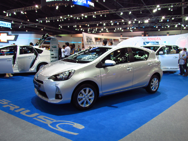 หลบมาที่ทางขวาของบูธก็จะมีเจ้า Aqua หรือ Prius C จอดอยู่ 1 คัน Prius C มีขนาดห้องโดยสารไล่เลี่ย