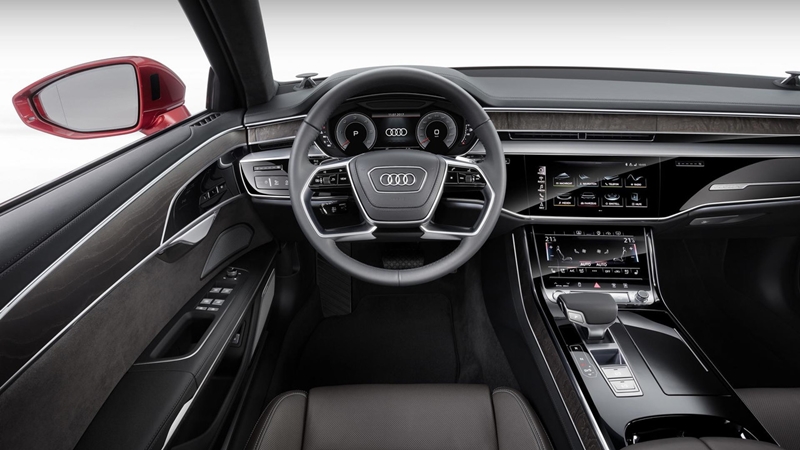 ดีไซน์แผงแดชบอร์ดของ All NEW Audi A8 จะเน้นดีไซน์ที่ร่มรื่นสะอาดตาแต่แผงไปด้วยต้นแบบแห่งความไฮเทค ได้แก่ แผงมาตรวัดหน้าจอสี TFT ในชื่อ Audi Virtual Cockpit, หน้าจอสัมผัสตรงกลางขนาดใหญ่และหน้าจอสัมผัสสำหรับสั่งการฟังก์ชันภายในรถ