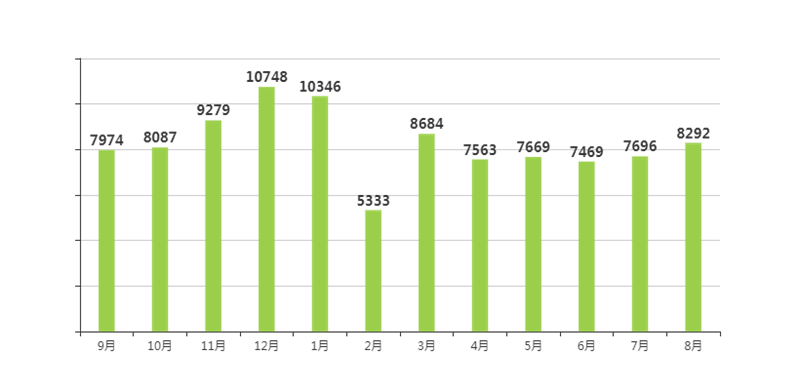 กราฟแสดงยอดขายรถยนต์ Toyota Camry ในตลาดจีนตั้งแต่เดือนกันยายน 2016 – สิงหาคม 2017 จาก auto.sina.com