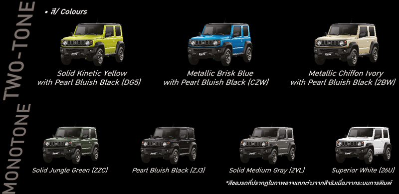 สีตัวถังภายนอกทั้งหมดของ Jimny SIERRA มีให้เลือกทั้งหมด 7 สี