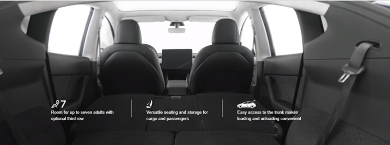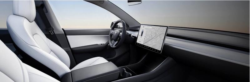 หลังคาของ All NEW Tesla Model Y เป็นแบบ Panoramic Sunroof กลางแดชบอร์ด มีหน้าจอแสดงผลขนาด 15 นิ้ว ตามสไตล์ของบริษัท ด้านความจุการขนสัมภาระ สามารถเก็บของใต้ฝากระโปรงหน้า พร้อมพับเบาะแถวสองแบบได้ จนได้ความจุสูงสุดรวมกัน 1,869 ลิตร