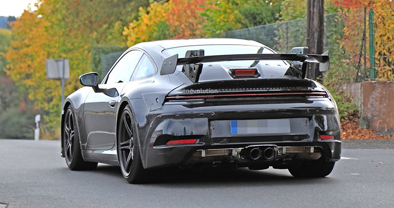 ในส่วนของด้านท้าย อย่างที่เกริ่นกันไปตอนแรกว่า ปีกสปอยเลอร์หลังขนาดใหญ่นี้ ก็ยังคงติดตั้งอยู่กับ 911 GT3 โฉมใหม่ เช่นเดียวกับรุ่นเดิมๆที่มันเคยเป็น แต่มีการปรับดีไซน์ให้โหดมากขึ้น ราวกับหยิบออกมาจากรถแข่งจริงในสนามเลยทีเดียว ขณะที่ปลายท่อไอเสียแบบคู่พ่นออกตรงกลาง รวมถึง Diffuser ชายล่างกันชน ของ GT3 คันใหม่ ทำให้มันดูมีความก้าวร้าวมากขึ้นกว่าเดิม ส่วนไฟท้ายแบบ LED Tube คาดขวางยาวด้านหลังรถ ก็เป็นลักษณะเดียวกับ All NEW 911 นั่นเอง