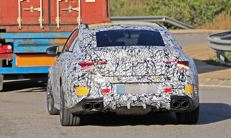 ขณะที่ด้านท้าย มาพร้อมกับปลายท่อไอเสีย 2 ท่อ แยกพ่นออกด้านซ้าย-ขวา ซึ่งฝั่งอยู่ในกันชนท้ายที่มีครีบ Diffuser จัดระเบียบกระแสอากาศ ตลอดจนโคมไฟท้ายเป็นแบบ LED ซึ่งดูมีดีไซน์คล้ายกับ CLS-Class ตัวล่าสุด ไม่น้อยเลยทีเดียว