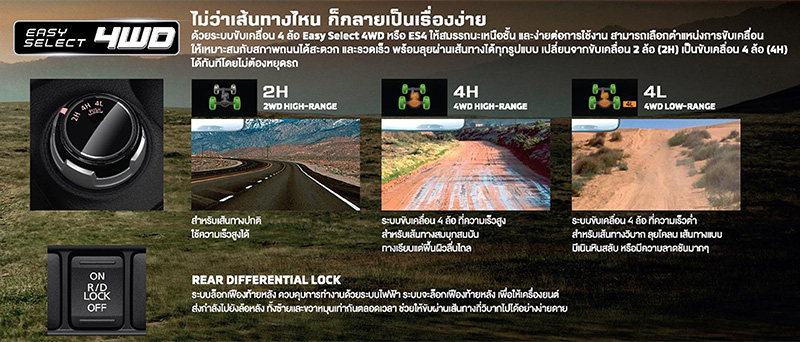 - ระบบขับเคลื่อน 4 ล้อ Part-Time 4WD (Easy Select) : 2H / 4H / 4L