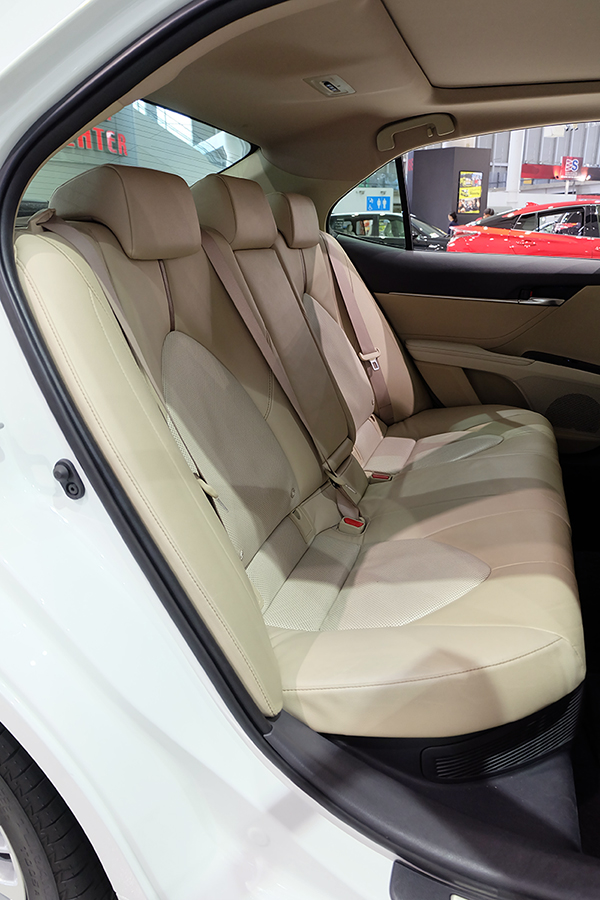 พนักพิงหลัง ใช้ฟองน้ำที่เฟิร์มแต่นุ่ม ออกแบบมาดี รองรับสรีระของผู้ขับขี่ได้ดีกว่าที่คิด ปีกข้างเบาะถูกเสริมขึ้นมาให้ช่วยซัพพอร์ตสรีระได้ดีขึ่น เหมือนนั่งลงไปพอดีกับหลุมเลยทีเดียว ส่วนเบาะรองนั่ง ความยาวพอๆกับ Toyota รุ่นก่อนๆ ปีกข้างออกแบบมาโอเค มีมุมเงยในระดับเหมาะสม และนุ่มเฟิร์มกำลังดี ส่วนเข็มขัดนิรภัยคู่หน้า เป็นแบบ ELR 3 จุด ปรับระดับสูง – ต่ำได้ พร้อมระบบลดแรงปะทะ และดึงกลับอัตโนมัติ Pre-tensioner & Load Limiter