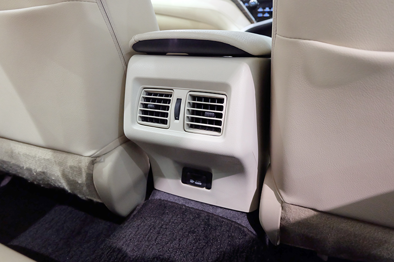 แผงควบคุมกลาง ล้อมกรอบด้วย Trim ประดับแบบ Piano Black ตามสมัยนิยม เครื่องปรับอากาศเป็นแบบอัตโนมัติ แยกฝั่งซ้าย – ขวา โดย DENSO มาพร้อมระบบฟอกอากาศ Nano-e จาก Panasonic ส่วนชุดเครื่องเสียง พร้อมหน้าจอ Monitor สีแบบ Touch Screen แสดงการทำงานของระบบนำทางผ่านดาวเทียม GPS Navigation System นั้น สำหรับตลาดญี่ป่น เป็นอุปกรณ์สั่งซื้อพิเศษ ซึ่งคุณต้องจ่ายเงินเพิ่ม ไม่ได้แถมมากับรถจากโรงงาน เช่นเดียวกับหลังคากระจก Panoramic Glass Roof และชุดเครื่องเสียงจาก JBL ที่ต้องสั่งติดตั้งเพิ่มเช่นเดียวกัน