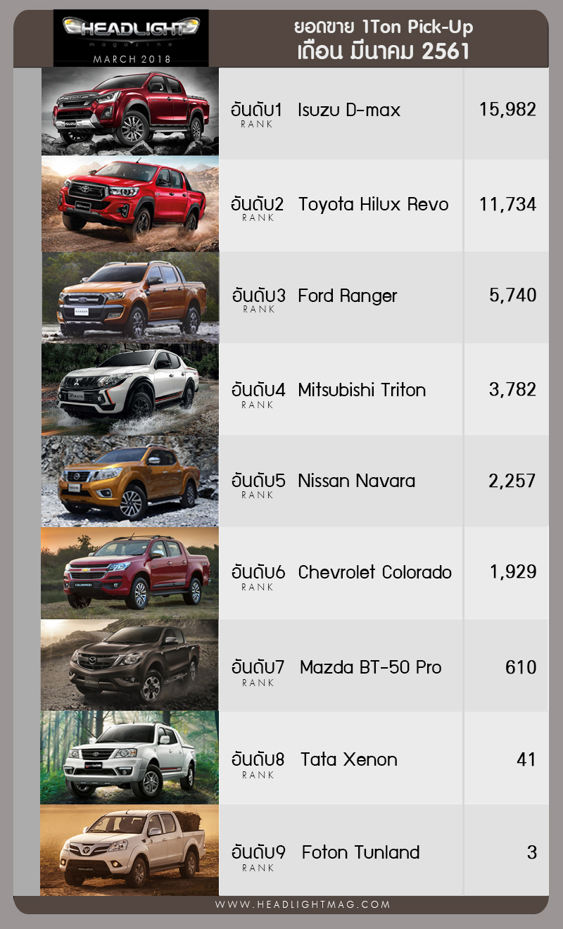 ยอดขายรถยนต์กลุ่มกระบะ เดือน มีนาคม 2561