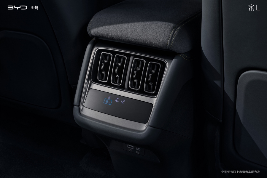จึงทำให้ Song L ถูกออกแบบภายในใหม่ โดยเฉพาะคอนโซลหน้าที่มาพร้อมฐานคอนโซลเกียร์ทรงสูงมีปีกขนาบทั้ง 2 ข้าง หุ้มด้วยวัสดุบุนุ่ม มาพร้อมหน้าจอที่สามารถปรับเปลี่ยนได้ระหว่างแนวนอน-แนวตั้ง ขนาด 15.6 นิ้ว พร้อมเครื่องเสียง Dyaudio เช่นเคย คันเกียร์ทรงใหญ่จับถนัดมือสไตล์เดียวกับ ATTO 3 ที่เปลี่ยนมาตกแต่งด้วยวัสดุคริสตัล ขณะที่ช่องแอร์ขนาดเล็กจำนวน 4 ช่อง สำหรับเป่าไปยังห้องโดยสารด้านหลังได้ถูกย้ายมาติดตั้งใต้หน้าจอกลาง และยังเป็นแบบปรับทิศทางด้วยมือ ปิดท้ายด้วยแท่นชาร์จโทรศัพท์มือถือแบบไร้สายจำนวน 2 ตำแหน่ง