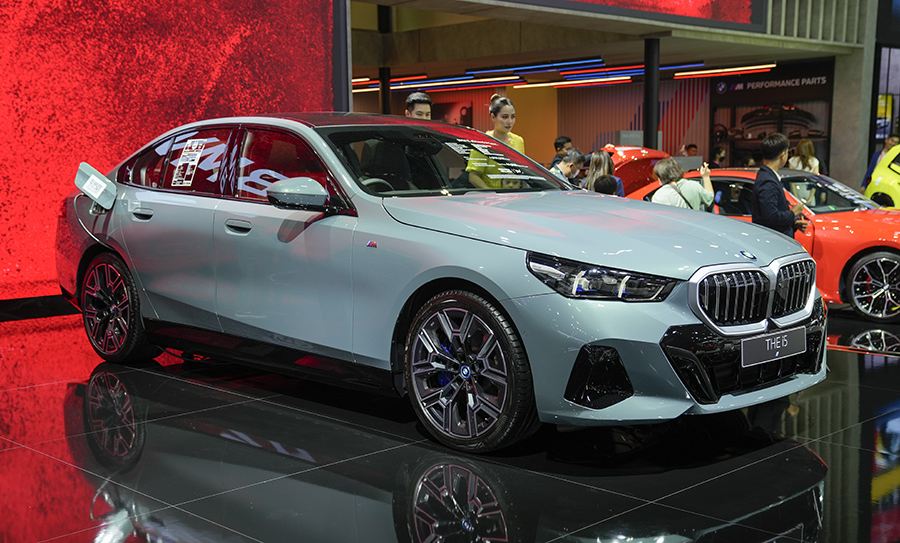 BMW i5 รับหน้าที่ตัวชูโรงของบูธ BMW ในปีนี้ ครั้งแรกกับ Mid-size Sedan ขุมพลังไฟฟ้าจากแคว้นบาวาเรีย เปิดราคาจำหน่ายในไทย 4,999,000 บาท สำหรับรุ่น eDrive40 M Sport ขับเคลื่อนล้อหลัง ด้วยมอเตอร์ไฟฟ้า 340 แรงม้า 400 นิวตันเมตร (My Mode SPORT) พ่วงด้วยแบตเตอรี่ Lithium-ion ความจุ 81.2 kWh วิ่งได้ไกลสุด 582 กิโลเมตร ตามมาตรฐาน WLTP และราคา 5,599,000 บาท สำหรับรุ่น M60 xDrive รหัสนี้เป็นคู่ชกตรงรุ่นของ AMG EQE53 มีอาวุธไม่ลับเป็นมอเตอร์คู่ 601 แรงม้า 795 นิวตันเมตร (My Mode SPORT) ความจุแบตเตอรี่เท่ากับรุ่น eDrive40 แต่วิ่งได้ระยะสั้นลงนิดหน่อยเหลือ 516 กิโลเมตร ตามมาตรฐาน WLTP