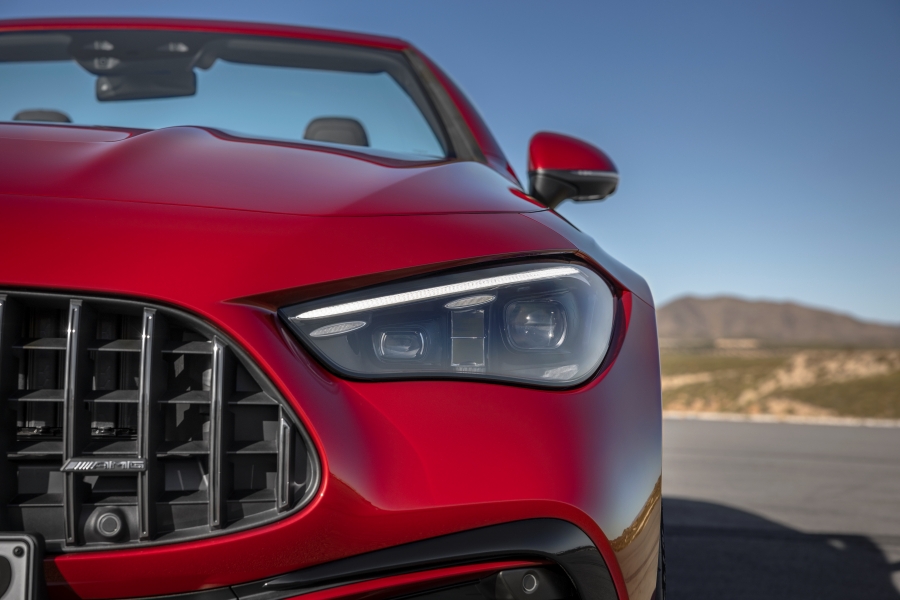 งานออกแบบภายนอกมีความใกล้เคียงกับรุ่นหลังคาแข็ง พร้อมด้วยการแต่งเติมกระจังหน้าที่มีความดุดันยิ่งกว่า พร้อมด้วยกันชนหน้าที่ได้รับการออกแบบใหม่ พร้อมล้ออัลลอยขนาด 19 นิ้ว หรือ 20 นิ้ว ที่มีหน้ากว้างพิเศษกว่ารุ่นปกติ เพิ่มเติมสปอยเลอร์สีดำเงาขนาดเล็ก พร้อมด้วยชุดกันชนท้ายและปลายท่อไอเสียแบบคู่ จำนวน 2 ชุด แทนที่ปลายท่อไอเสียแบบเหลี่ยมขอบโครเมียมในรุ่นปกติ และสำหรับลูกค้าที่ต้องการความดุดันยิ่งกว่า ทาง AMG ได้เตรียมแพ็คเกจ Optics Carbon และ Night package สำหรับการอัพเกรดชิ้นส่วนดิฟฟิวเซอร์และลิ้นกันชนหน้า รวมไปถึงการเพิ่มเติมชิ้นส่วนเพื่อเพิ่มประสิทธิภาพทางแอโรไดนามิกส์