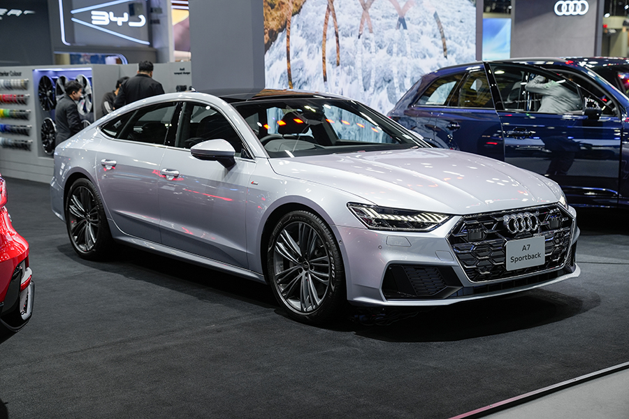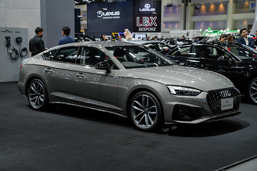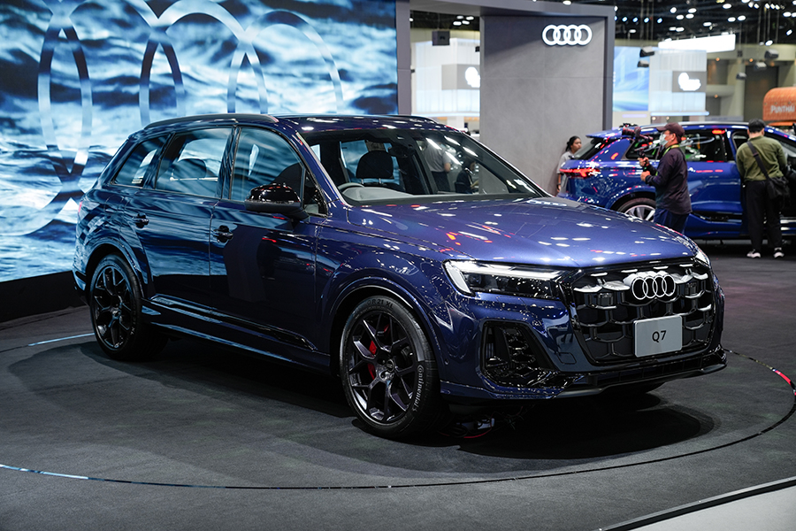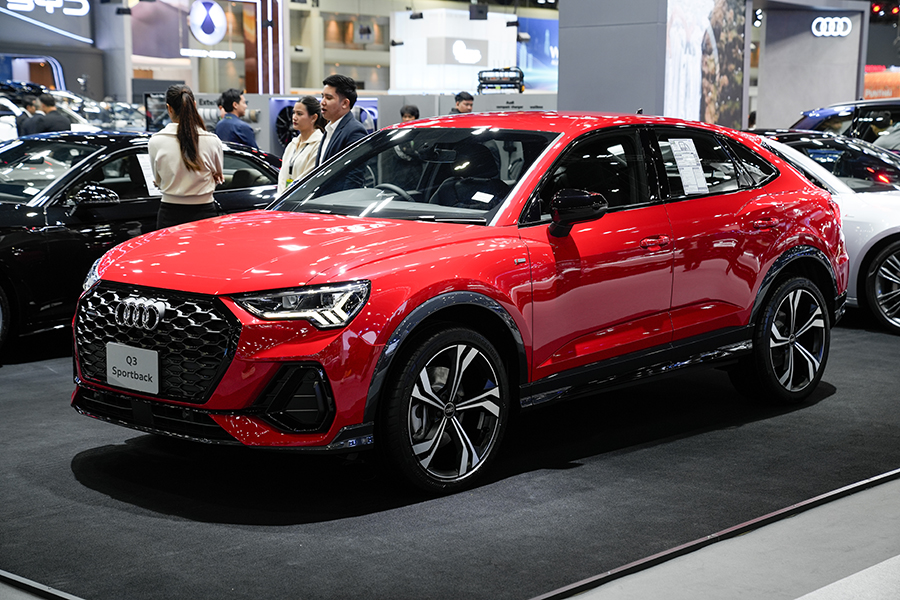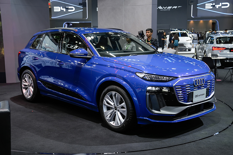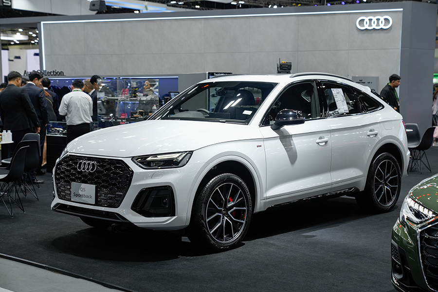 แม้ว่ายอดขายจะหดตัวลงพอสมควร ทว่า Audi ยังสู้ไม่ถอย ขนทัพรถยนต์แทบทุกรุ่นเข้าร่วมงานเหมือนเช่นเคย สำหรับรถยนต์ที่เพิ่งเปิดตัวไปหมาดๆ เป็น SUV 2 รุ่น เริ่มจาก Q6 e-tron Performance รถยนต์ไฟฟ้าทรงสูงกับค่าตัว 4,699,000 บาท เข้ามาแทรกตัวอยู่ระหว่าง Q5 และ Q7 มีจุดเด่นอยู่ที่การใช้แพลตฟอร์ม 800V ที่ทาง Audi พัฒนาขึ้นร่วมกับ Porsche ติดตั้งขุมพลังมอเตอร์เดี่ยว ขับเคลื่อนล้อหลัง 302 แรงม้า พ่วงด้วยแบตเตอรี่ 100 kWh ตัวรถโดยรวมถือว่าน่าใช้ อ็อพชั่นแน่น เบาะนั่งสบาย เสียอย่างเดียว… ลายล้อแอบจืดไปนิด