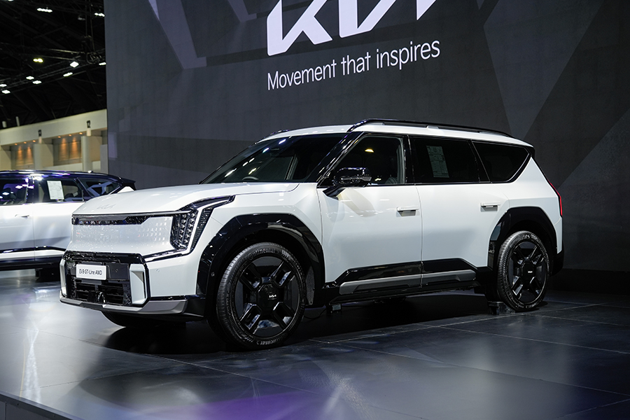 หลังเปิดตัว EV5 และ EV9 ไปเมื่อช่วงต้นปีที่ผ่าน งานปลายปี KIA เลยขอสร้างสีสันต์และความน่าสนใจของบูธ ด้วยการนำ EV 5 GT-line รุ่นย่อยใหม่ มาโชว์ตัว สิ่งที่ทำให้ GT-line แตกต่างจากรุ่นปกติ ได้แด่ ชุดตกแต่งภายนอกรอบคันแบบ GT-Line แถบไฟ LED บริเวณกึ่งกลางกระจังหน้า ไฟเลี้ยวหน้า – หลัง แบบ Sequential สัญลักษณ์ GT -Line บริเวณฝาท้าย ล้ออัลลอย GT-Line ขนาด 20 นิ้ว รัดด้วยยาง 255/45 R20 ภายในห้องโดยสารเปลี่ยนมาใช้สีทูโทน ขาวสลับดำ เปลี่ยนพวงมาลัยเป็นแบบ GT-Line 3 ก้าน สนนราคาพิเศษช่วงเปิดตัวอยู่ที่ 1,849,000 บาท จำกัดแค่ 80 คัน หลังจากนั้น จะมีการปรับราคาเพิ่มขึ้น