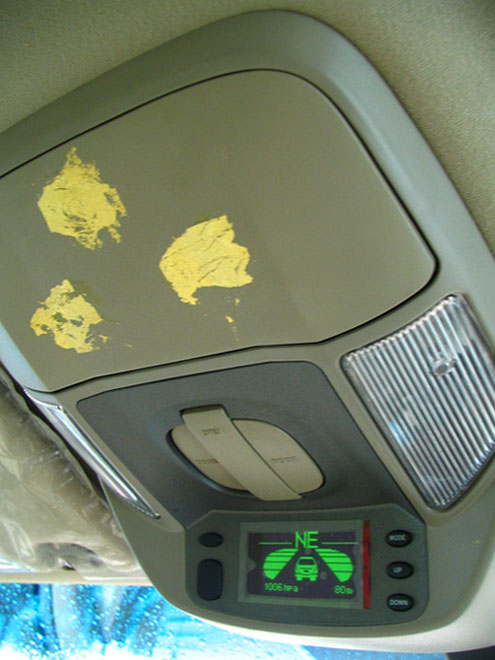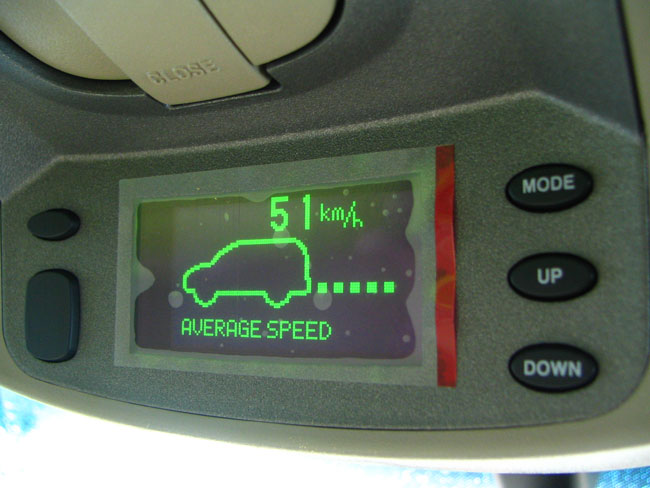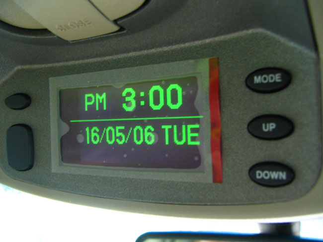 ชุดดิสเพลย์ไฟสี เขียวๆตรงเพดานที่เป็นเข็มทิศได้ เป็นนาฬิกาได้นั่นก็ถือว่าแปลกดี ในโหมดเข็มทิศ ผมเห็นอนิเมชั่นของไฟสีเขียว(ที่วาบเป็นแนวๆไป ดูแล้วเกือบไร้สาระ) ที่ดูไปดูมาอาจจะพาให้ผมนึกได้ว่าผมกำลังขับยานEnterpriseโดยมีชาวคลิงก้อน ที่ชื่อจิมมี่นั่งแหกขาบนเบาะแถวที่สองคอยกำกับการขับยานของผมอยู่