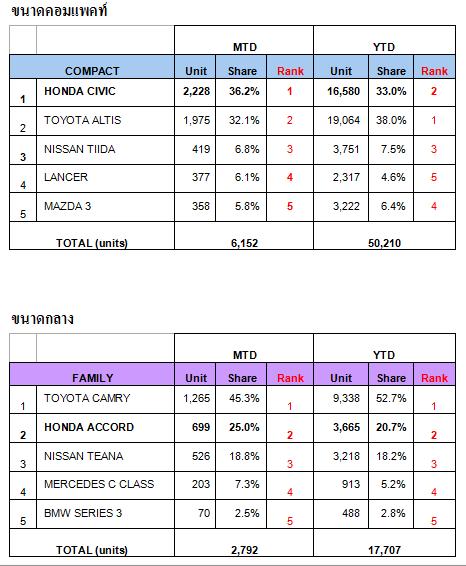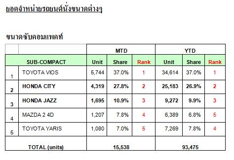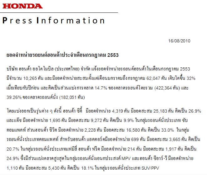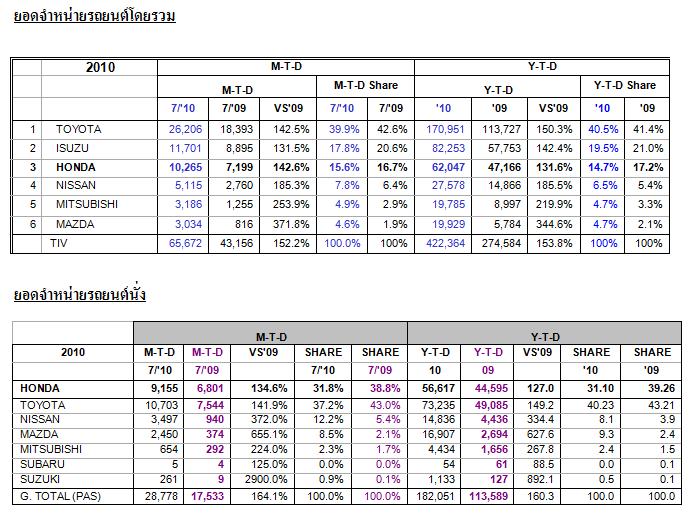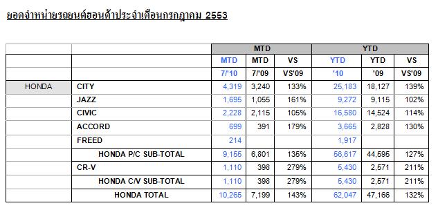 ยอดจำหน่ายรถยนต์ฮอนด้าประจำเดือนกรกฎาคม 2553