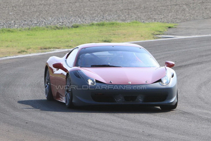 458 Italia ส่วนอีกคันหนึ่งใช้กันชนหน้าอีกแบบหนึ่ง นัยว่าเป็นการตบตาไปพลางๆไม่ให้