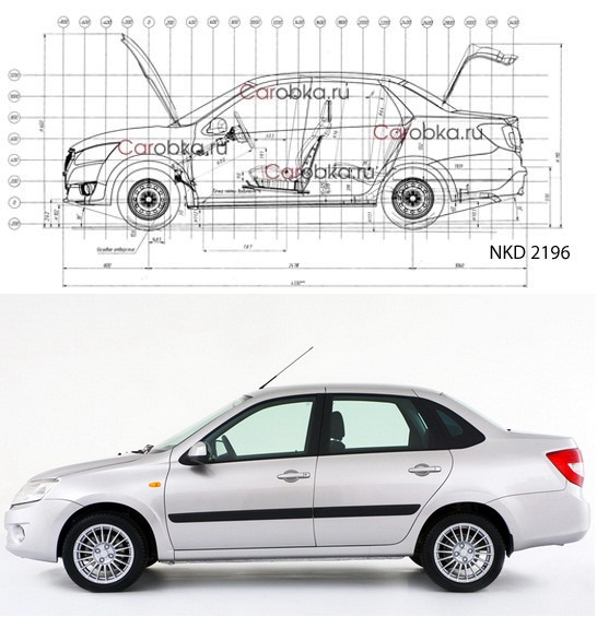 เมื่อเราเปรียบเทียบรายละเอียดจากภาพ Drawing รถยนต์ Datsun NKD 2196 และ Lada Granta ก็พบว่ามีความรถ