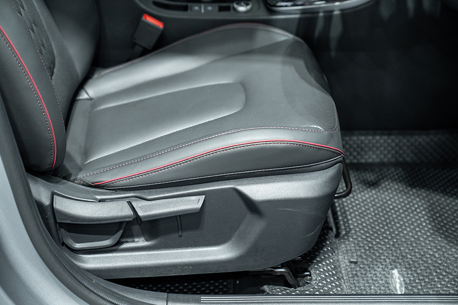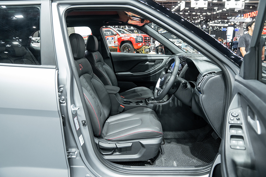 - พวงมาลัย และหัวเกียร์ ตกแต่งด้วยตะเข็บด้ายสีแดง