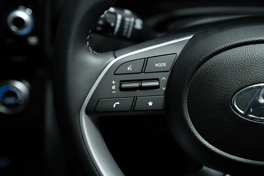 - ปุ่มควบคุมเครื่องเสียงและสั่งการ Bluetooth บนพวงมาลัย