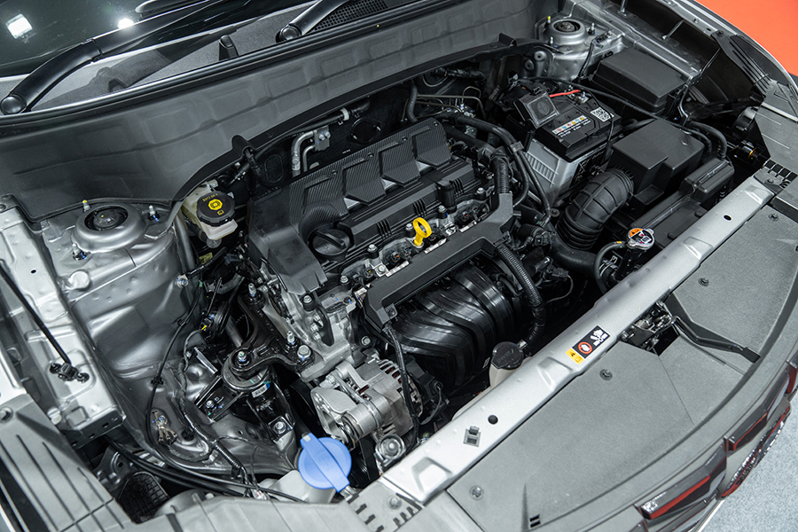 เครื่องยนต์แบบ Smart Stream รหัส G4FL เบนซิน 4 สูบ DOHC 16 วาล์ว 1.5 ลิตร 1,497 ซีซี. กระบอกสูบ x ช่วงชัก : 75.6 x 83.4 มิลลิเมตร กำลังอัด 10.5 : 1 ฉีดจ่ายเชื้อเพลิงด้วยหัวฉีด MPI (Multi-point Injection) พร้อมระบบแปรผันวาล์ว D-CVVT (Dual Continuous Variable Valve Timing) กำลังสูงสุด 115 แรงม้า (PS) ที่ 6,300 รอบ/นาที แรงบิดสูงสุด 144 นิวตันเมตร ที่ 4,500 รอบ/นาที ผ่านมาตรฐานไอเสีย EURO4 จับคู่กับเกียร์อัตโนมัติอัตราทดแปรผัน IVT (Intelligent Variable Transmission) ขับเคลื่อนล้อหน้า ความจุถังน้ำมัน 40 ลิตร