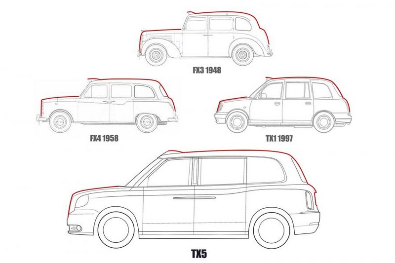 แรงบันดาลใจการออกแบบของ London Taxi TX5 คือแท็กซี่รุ่น FX4 ในปี 1958 โดยพยายามตีความกระจังหน้าแนวตั้ง