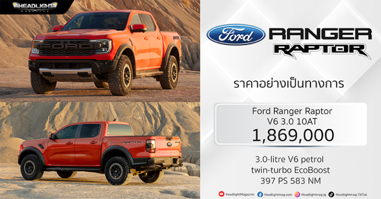 ราคาอย่างเป็นทางการ Ford Ranger RAPTOR Ranger Raptor V … อ่านเพิ่มเติม ราคาอย่างเป็นทางการ Ford Ranger RAPTOR 3.0 V6 10AT : 1,869,000 บาท