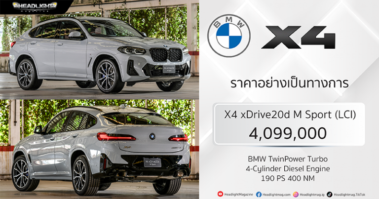 ราคาอย่างเป็นทางการ BMW X4 xDrive20d M Sport (LCI) : 4,099,000 บาท