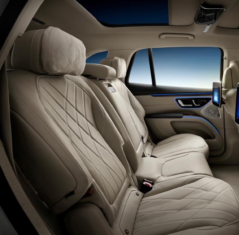ภายในห้องโดยสารของ EQS SUV ยังคงความล้ำอนาคตตามสไตล์ Mercedes-EQ แผงหน้าปัดด้านหน้ามาพร้อมกับระบบ MBUX Hyperscreen ที่แทบจะเรียกได้ว่ายกมาจากเวอร์ชั่นซีดานเกือบทั้งยวง เบาะนั่งของรุ่นมาตรฐานจะเป็นแบบ 2 แถว 5 ตำแหน่ง และมีรุ่นเบาะนั่ง 3 แถว 7 ตำแหน่ง ให้เลือกด้วยเช่นกัน