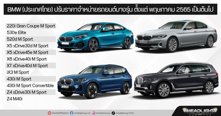 BMW (ประเทศไทย) ประกาศปรับราคาจำหน่ายรถยนต์บางรุ่น ตั้งแต่ พฤษภาคม 2565 เป็นต้นไป
