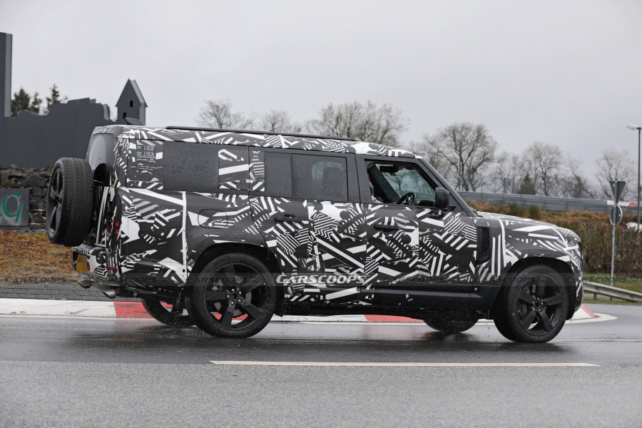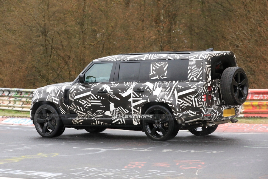 แต่งานออกแบบโดยรวมยังคงอ้างอิงได้จาก Defender 90 และ 110 ทั้งด้านหน้าและด้านข้าง โดยมีระยะ Overhang ด้านหลังที่ถูกยืดออกไป โดยคาดการณ์ว่าตัวถังจะมีความยาวประมาณ 5,100 มิลลิเมตร ซึ่งยาวกว่ารุ่น 110 ที่ 342 มิลลิเมตร และ ยาวกว่า รุ่น 90 (3 ประตู) ถึง 777 มิลลิเมตร