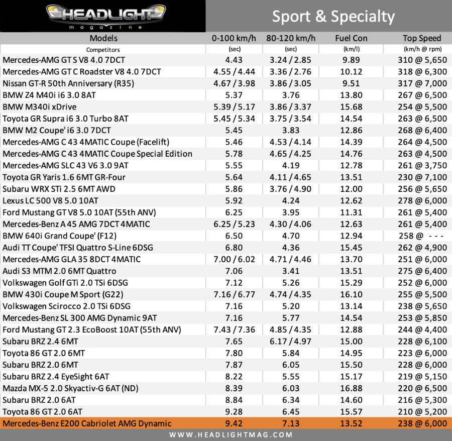 อัตราเร่ง อัตราสิ้นเปลือง Mercedes-Benz E200 Cabriolet AMG Dynamic (Facelift)