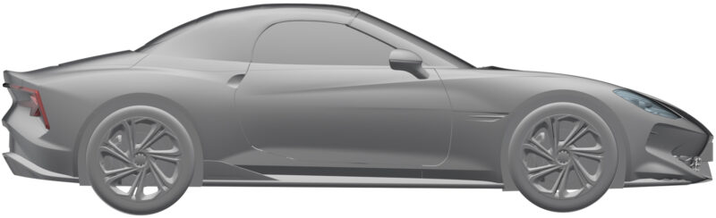 MG Cyberster เปิดตัวเป็นครั้งแรก ในฐานะรถยนต์ต้นแบบที่งาน 2021 Shanghai Auto Show ล่าสุด มีภาพสิทธิบัตรดีไซน์ภายนอกรอบคันมาให้ชมกันแล้ว โดยเส้นสายตัวถังภาพรวมยังคงเดิม แต่ปรับเปลี่ยนองค์ประกอบให้เหมาะกับการผลิตจริง ทั้งนี้ ยังไม่มีรายละเอียดเรื่องขุมพลัง แต่คาดว่าจะเป็นระบบไฟฟ้า EV เหมือนต้นแบบ