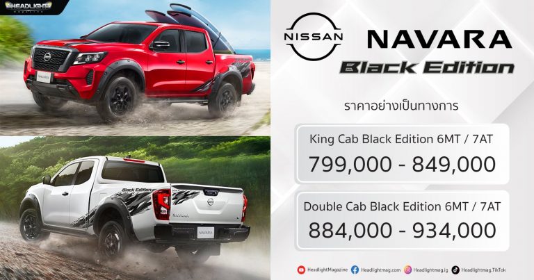 ราคาอย่างเป็นทางการ Nissan Navara Black Edition (MY 2022) : 799,000 – 934,000 บาท