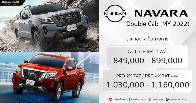 ราคาอย่างเป็นทางการ Nissan Navara Double Cab (MY 2022) : 849,000 – 1,160,000 บาท