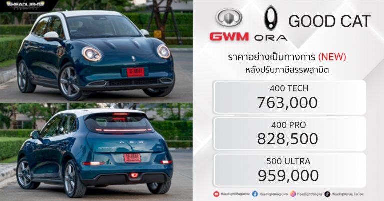 สรรพสามิตใหม่ ถูกลงอีก 79,500 บาท ! ราคาอย่างเป็นทางการ ORA Good Cat : 763,000 – 959,000 บาท