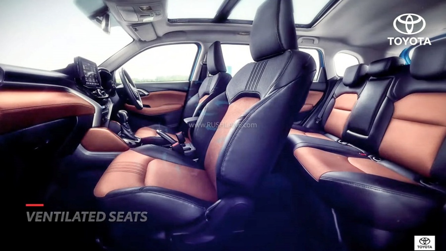 ภายในมาพร้อมอุปกรณ์อำนวยความสะดวกพอสมควร มีกลิ่นอายของ Corolla Cross ผสมผสานกับปุ่มควบคุมจาก Suzuki ในบางจุด ตรงกลางคอนโซลมาพร้อมจอ Infotainment ขนาด 9 นิ้ว พร้อมการเชื่อมต่อ Apple Carplay และ Android Auto เบาะหน้าพร้อมระบบระบายอากาศ ระบบปรับอากาศอัตโนมัติ เบาะคนขับปรับด้วยไฟฟ้า หลังคา Panoramic กล้องมองรอบคัน 360 องศา ระบบวัดลมยาง TPMS และ จอ Head-up display