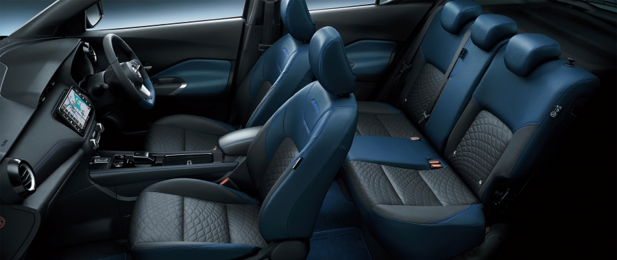 ขณะที่สีภายในมีทั้งแบบผ้าลายสปอร์ต และหนังสีทู-โทนให้เลือก 3 เฉดสี ได้แก่ ดำ-น้ำตาล ดำ-เบจ และ ดำ-ส้ม ในขณะที่รุ่น Autech จะได้เบาะหนังลายหมากรุกสีดำ-น้ำเงิน ลายไม่เหมือนเวอร์ชั่นไทย