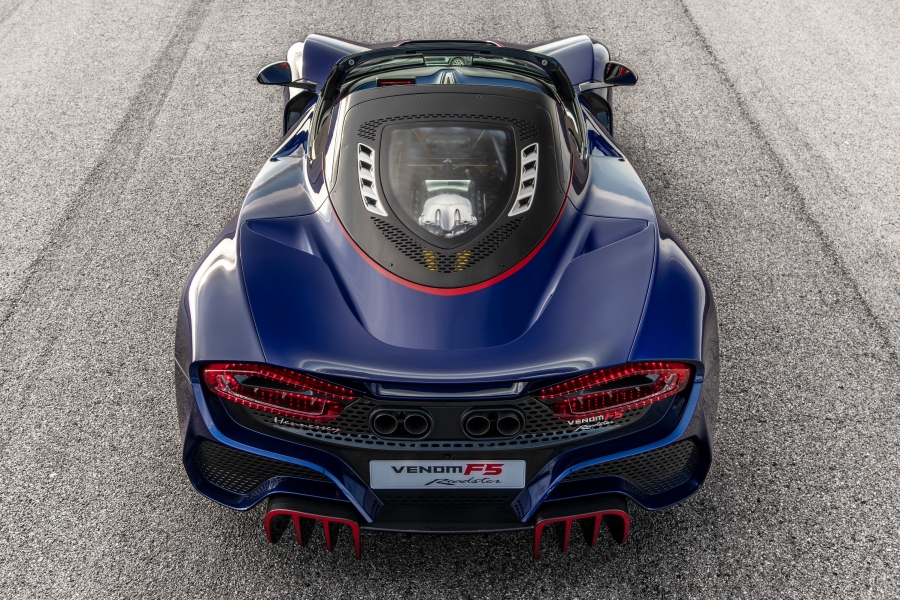 ด้านท้ายมาพร้อมกระจก Tempered glass ที่ปิดห้องเครื่องไว้แบบโปร่งใส เพื่อให้สามารถชมความงามของขุมพลัง V8 อันเลื่องชื่อ โดยวัสดุหลายชิ้นทาง Hennesey เคลมว่าได้นำเทคโนโลยีจากเครื่องบินรบ ที่นอกจากแข็งแรงและมีน้ำหนักเบาแล้ว ยังทนความร้อนได้สูงถึง 540 องศาเซลเซียส ปิดท้ายด้วยล้ออัลลอยแบบ Forged อะลูมิเนียม