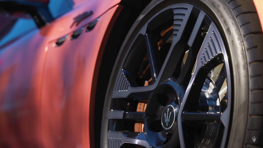 สิ่งที่สะดุดตาที่สุดคงจะหนีไม่พ้นป้ายบอกชื่อรุ่น Folgore ซึ่งเป็นชื่อของรถตระกูล EV จากค่าย Maserati ในอนาคตอันใกล้นี้อีกด้วย โดยด้านท้ายมีความแตกต่างจาก Maserati ทุกรุ่น ด้วยกันชนหลังที่ไร้ท่อไอเสีย แต่แทนที่ด้วยดิฟฟิวเซอร์ขนาดใหญ่ พร้อมไฟท้ายทรงเรียวยาว และยังแฝงเอกลักษณ์ลวดลายไฟท้ายที่อ้างอิงจากรุ่นก่อนหน้าอีกเช่นกัน ปิดท้ายด้วยช่องชาร์จไฟที่กันชนท้าย