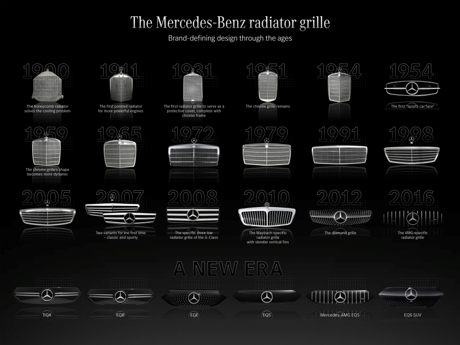 การเปลี่ยนแปลงเริ่มขึ้นอีกครั้ง เมื่อ Mercedes -benz แนะนำรถ ตระกูล EQ-series ซึ่งเป็นรถที่ใช้ขุมพลังไฟฟ้า 100% จึงทำให้มีการสร้างอัตลักษณ์แบบใหม่ โดยกระจังหน้าเปลี่ยนเป็นแบบทึบ เนื่องจากไม่ต้องการกระแสลมเพื่อเข้าไประบายความร้อนให้กับหม้อน้ำและเครื่องยนต์เหมือนดังรถรุ่นก่อนที่ใช้เครื่องยนต์สันดาปภายใน ในทางตรงกันข้าม กระจังหน้าแบบทึบนี้ช่วยให้การติดตั้งเซนเซอร์ ต่างๆ ไม่ว่าจะเป็น กล้อง Radar LIDAR และอัตราโซนิค ที่ช่วยให้ระบบขับขี่อัตโนมัติรวมทั้งระบบความปลอดภัยล้ำสมัยต่างๆ ทำงานได้อย่างมีประสิทธิภาพ โดยไม่รบกวนงานออกแบบด้านหน้ารถ