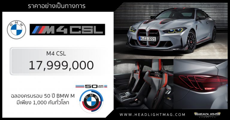 ราคาอย่างเป็นทางการ BMW M4 CSL : 17,999,000 บาท | โควต้า 4 จาก 1,000 คัน ทั่วโลก