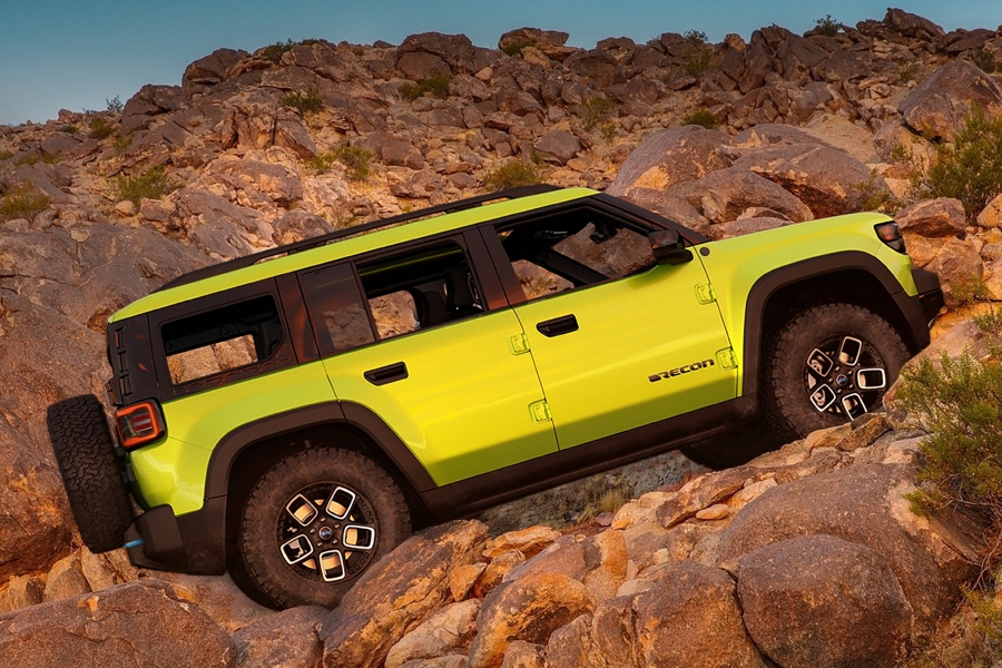 โดยรุ่นแรก Recon concept ถูกวางตำแหน่งไว้ให้เป็น Jeep แท้ๆ 100% ที่มาพร้อมความสามารถในการลุยแบบไม่แพ้ รถ 4X4 ในตำนานรุ่นอื่นๆ และจะมีเพียงขุมพลังไฟฟ้า 100% เท่านั้นให้เลือก ซึ่งจะถูกติดตั้งระบบช่วยเหลือการขับเคลื่อน 4 ล้อ เช่น Jeep Selec-Terrain traction management system และ e-locker axle หรือระบบล๊อคเฟืองท้ายไฟฟ้า พร้อมติดตั้งแผ่นป้องกันการกระแทกด้านใต้ ขอลากและชิ้นส่วนที่เตรียมไว้สำหรับการต่อพ่วงอุปกรณ์เสริมของการลุย โดดเด่นด้วยประตูแบบถอดแยกชิ้นได้แบบเดียวกับ Wrangler พร้อมระบบเปิดหลังคาแบบ One-touch