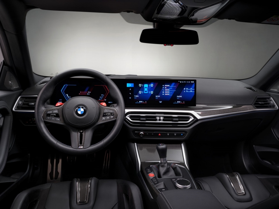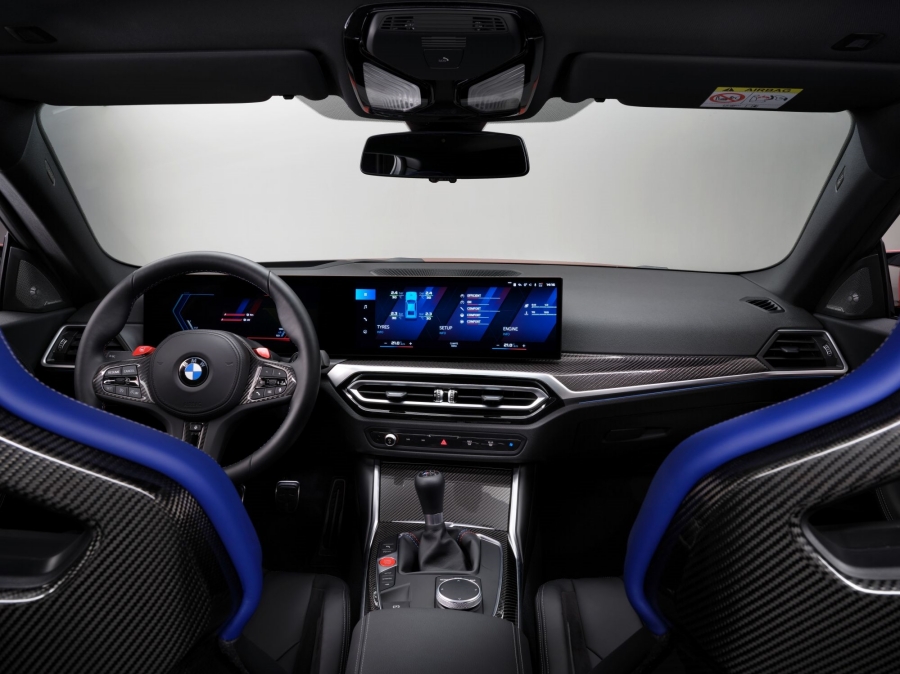 ภายในตกแต่งด้วยวัสดุคาร์บอนไฟเบอร์รอบคัน ไม่ว่าจะเป็นพวงมาลัย แป้นแพดเดิลชิฟท์สำหรับรุ่นเกียร์อัตโนมัติ รวมไปถึงการใช้โทนสี 3 สีหลัก แดง น้ำเงินเข้มและฟ้าของ BMW M มาพร้อมระบบ iDrive เวอร์ชั่นที่ 8 จอโค้งแบบคู่ที่เชื่อมต่อจอแสดงผลข้อมูลการขับขี่ขนาด 12.3 นิ้ว และจอกลางขนาด 14.9 นิ้วเข้าด้วยกัน พร้อมระบบนำทาง BMW Maps navigation เป็นอุปกรณ์มาตรฐาน อย่างไรก็ตามหากต้องการระบบแสดงผลข้อมูลตัวรถ แบบเฉพาะจาก BMW M จะต้องจ่ายเงินเพิ่มเป็นออฟชั่น รวมไปถึงระบบชาร์จโทรศัพท์แบบไร้สาย ระบบการเชื่อมต่อ eSIM 5G ก็นับเป็นออฟชั่นที่ต้องเสียเงิน เพิ่มเช่นเดียวกัน