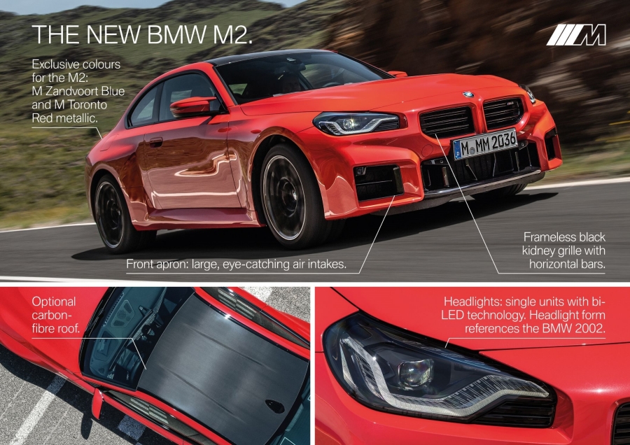 สิ้นสุดการรอคอยสำหรับ BMW M2 ซึ่งถือเป็นรุ่นที่ 2 แล้ว และจะเป็น M2 รุ่นสุดท้ายที่ยังคงใช้ขุมพลังเครื่องยนต์สันดาปภายในอยู่ ครั้งนี้ BMW ตั้งใจออกแบบให้มีความแตกต่างจาก 2-series รุ่นมาตรฐานพอสมควร ชนิดที่ว่าด้านหน้าดูเสมือนรถคนละรุ่นกันเลยทีเดียว