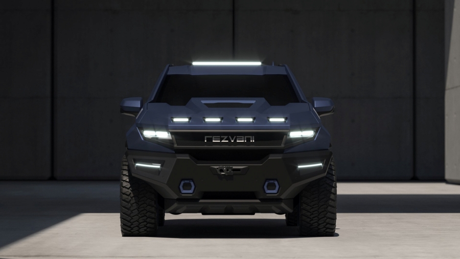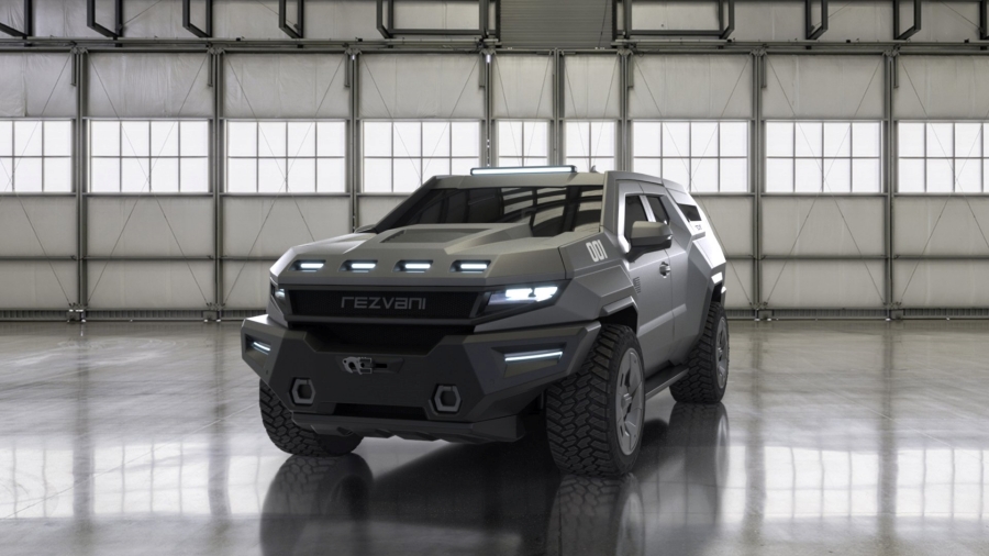 Rezvani Vengeance รถ SUV ทรงบึกบึนที่มีรูปลักษณ์ภายนอกเหมือนหลุดมาจากค่ายทหาร พร้อมลุยทุกสภาวะพื้นผิว ทั้งเส้นสายตัวถังที่เหลี่ยมสัน ด้านหน้าติดตั้งไฟ LED 4 ดวงที่ขอบฝากระโปรง ซ่อนกระจังหน้าไว้ภายในกันชน พร้อมโลโก้ Rezvani ขนาบข้างด้วยไฟหน้าใหม่ทรงเหลี่ยมแบนบาง ปิดท้ายด้วยกันชนหน้าทรงแน่นหนาพร้อมขอลากและอุปกรณ์ช่วยเหลือเวลาลุย OFFROAD