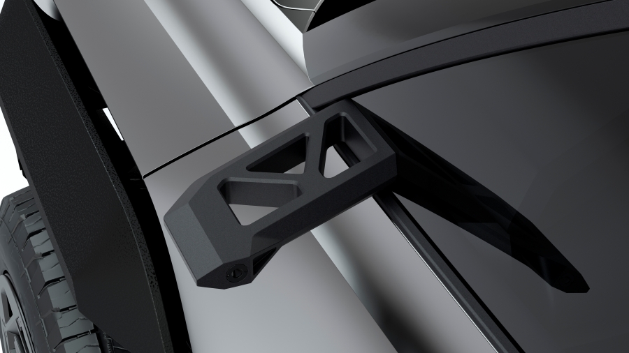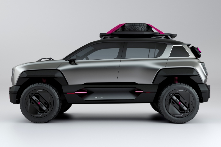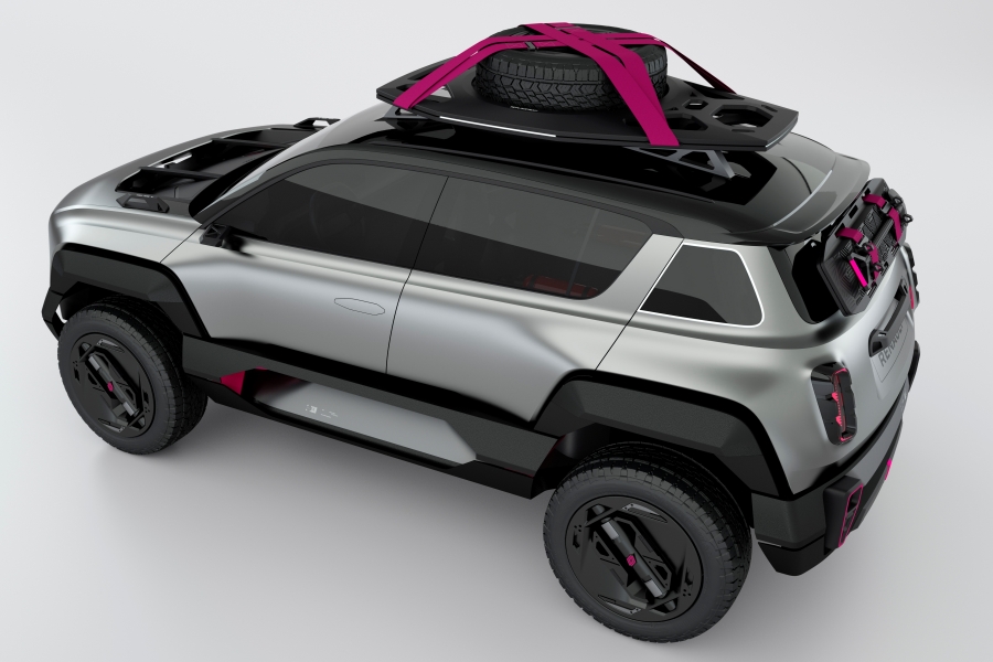 กระจังหน้าทรงสี่เหลี่ยมพื้นผ้าสีดำได้แรงบันดาลใจมาจาก Renault 4 รวมไปถึงชิ้นส่วนอื่นๆ เช่น ไฟหน้าทรงเหลี่ยม กระจกที่เสา C ทรงสี่เหลี่ยมคางหมู ฝากระโปรงท้ายลาดเอียง และซุ้มล้อทรงเหลี่ยม สีสันภายนอกใช้สีเทา Gun Metal Silver แบบด้าน มาพร้อมล้ออัลลอยขนาด 19 นิ้ว รัดด้วยยางขนาด 255/55 R19 ที่ติดตั้งชุดปั๊มลมอัตโนมัติช่วยควบคุมแรงดันลมตามความต้องการขณะลุยทางทุรกันดาร พร้อมช่วงล่างที่ยกสูงและมีระยะต่ำสุดอยู่ที่ 200 มิลลิเมตร