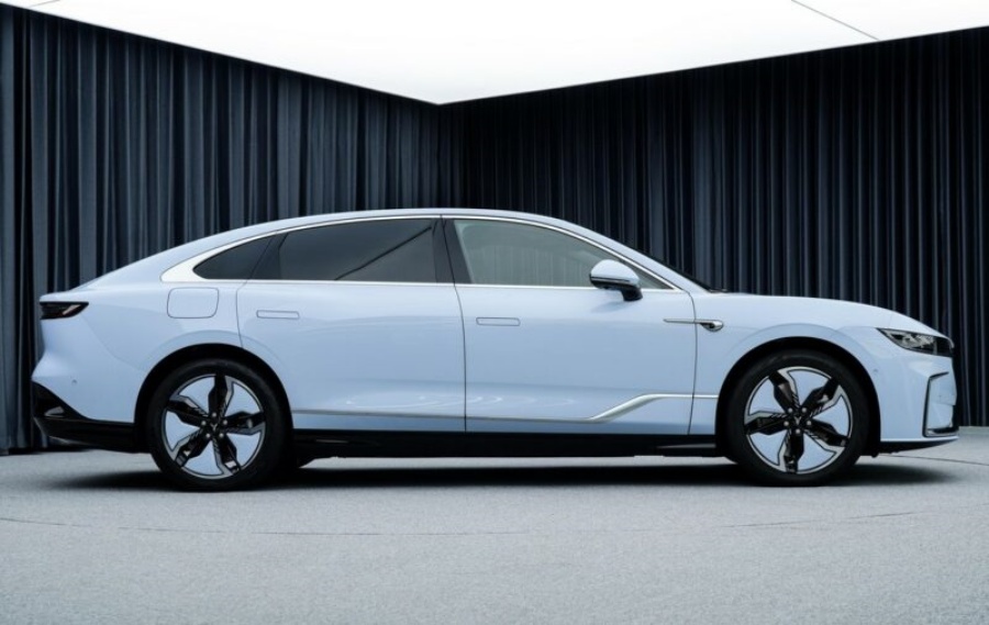 งานออกแบบด้านหน้ามีการติดตั้งกล้องขนาดใหญ่ พร้อมการออกแบบธีมใหม่หมดจด ทำให้ตัวรถมีความโดดเด่นในแบบฉบับรถ EV ไร้ซึ่งช่องดักลมที่กระจังหน้าขนาดใหญ่ แต่จะใช้งานออกแบบที่เรียบเนียนไปกับชิ้นส่วนอื่นๆ ของตัวรถ ด้านข้างมาพร้อมมือเปิดประตูแบบซ่อนไว้กับตัวถัง พร้อมล้ออัลลอยลวดลายบ่งบอกความเป็นรถ EV ที่ต้องคำนึงถึงหลักการอากาศพลศาสตร์เป็นสำคัญ และยังติดตั้งคิ้วโครเมียมขนาดใหญ่รูปตัว Z ที่ประตูทั้ง 4 บาน