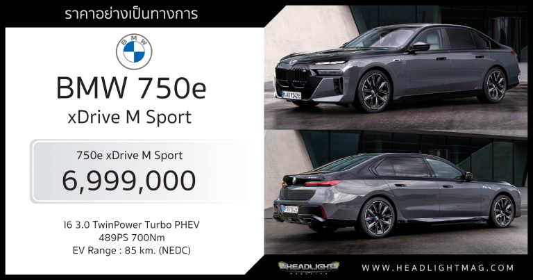 ราคาอย่างเป็นทางการ BMW 750e xDrive M Sport 750e xDrive … อ่านเพิ่มเติม ราคาอย่างเป็นทางการ BMW 750e xDrive M Sport : 6,999,000 บาท | วิ่งด้วยไฟฟ้าไกล 85 km. (NEDC)