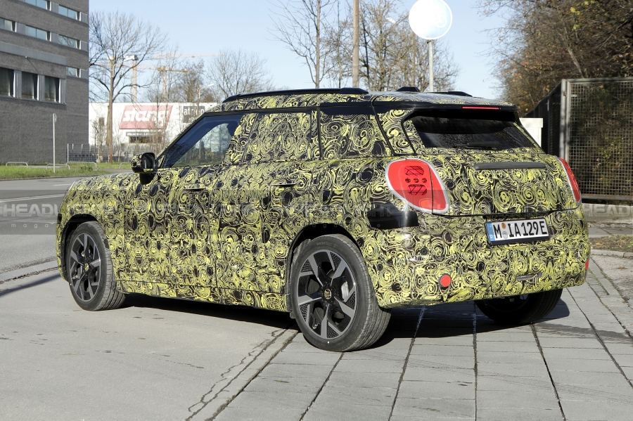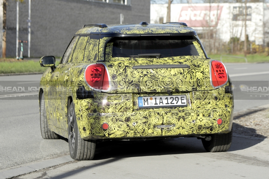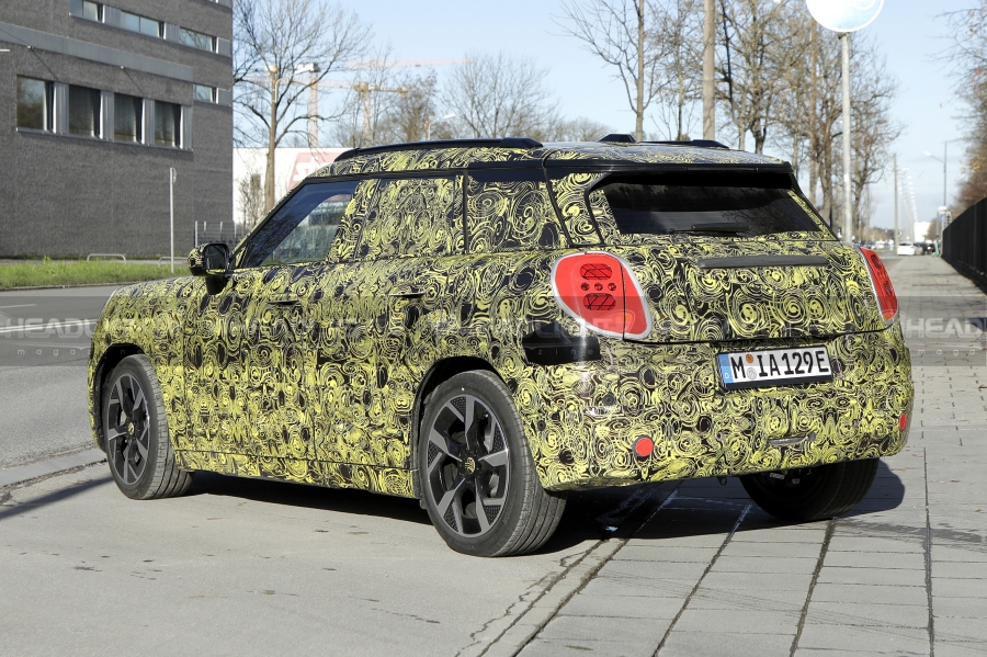 ด้านท้ายยังคงติดตั้งไฟท้ายแฝงลวดลายธง Union Jack เหมือน Mini รุ่นปัจจุบัน ในขณะที่ลวดลายของกันชนท้ายยังคงทิ้งไว้เป็นปริศนาจนกว่าจะมีรูปหลุดซึ่งมีการพรางตัวน้อยกว่านี้ แต่เป็นที่แน่นอนแล้วว่ารูปทรงด้านท้ายยังคงคล้ายคลึงกับ Mini Hatchback ซึ่งจะมีขนาดใกล้เคียงกัน