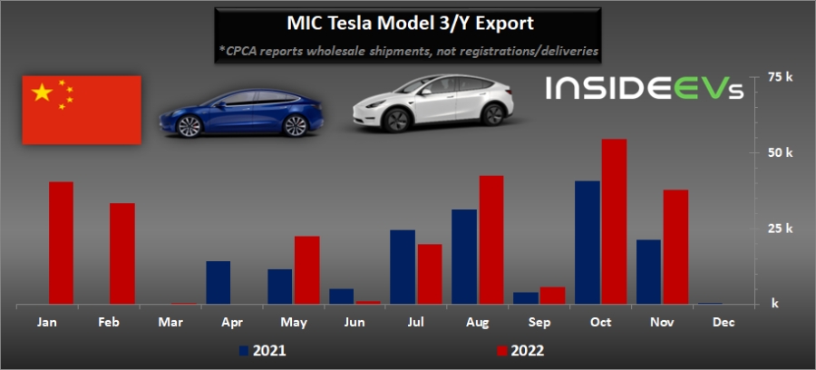 อีกทั้ง Tesla ประเทศจีน ได้ส่งออกรถยนต์ไปมากกว่า 257,000 คัน หรือคิดเป็นอัตราส่วนเพิ่มขึ้นสูงถึง 69% เมื่อเทียบกับปี 2021 เนื่องจาก Tesla ได้ส่งออกรถยนต์จำนวนมากไปยังตลาดยุโรป