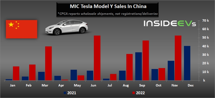 หากแยกยอดขายเฉพาะภายในประเทศ ของเดือนพฤศจิกายน 2022 จะพบว่า มีตัวเลขสูงถึง 62,493 คัน หรือคิดเป็นอัตราส่วนเพิ่มขึ้นสูงถึง 97% เมื่อเทียบกับปีก่อนหน้า เนื่องจาก Tesla ประเทศจีนมีการปรับลดราคาจำหน่าย รวมทั้งมีเงินสนับสนุนจากนโยบายของรัฐ ที่มีมูลค่าสูงถึง 11,088 หยวน หรือประมาณ 55,000 บาท